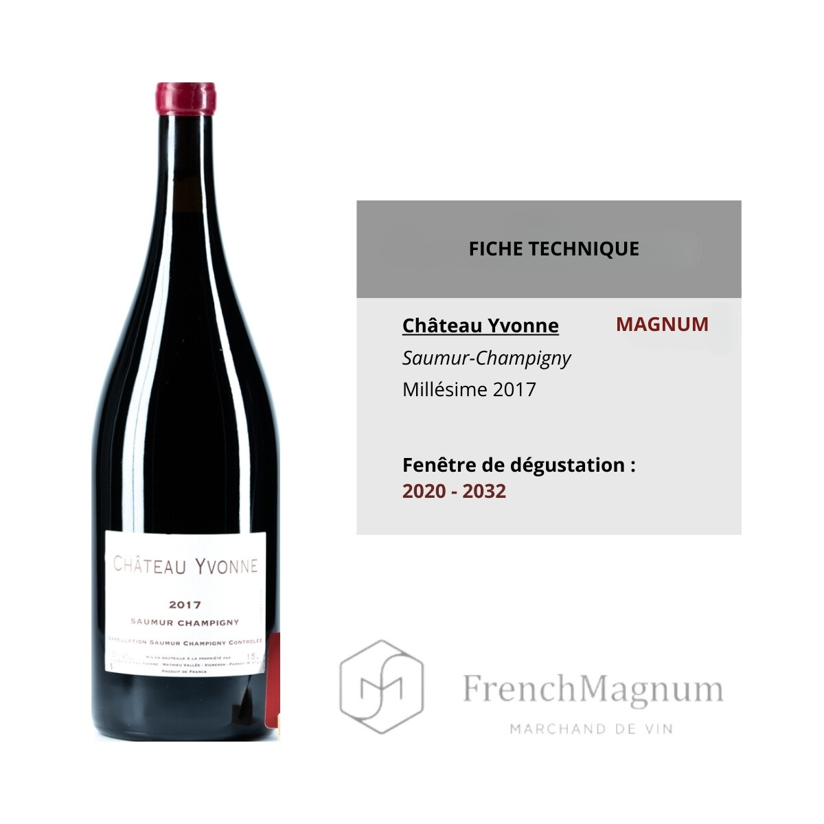 Pour accompagner ce Château Yvonne Rouge 2017 en magnum, nous vous suggérons des plats raffinés tels qu’un magret de canard aux cerises, un carré d’agneau rôti aux herbes, ou encore un plateau de fromages affinés, qui sauront sublimer ses saveurs complexes et sa texture onctueuse.